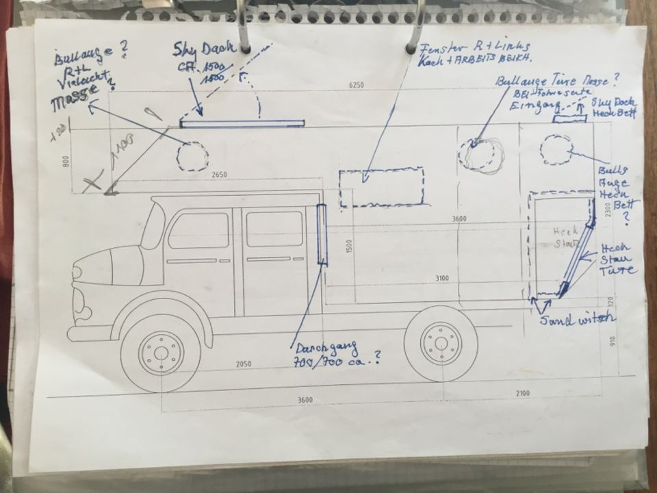 - Aufbau der Fahrerkabine mit Leerkabine (zur Beibehaltung des H Oldtimer Zulassung) und Alkoven (mit Durchbruch und Fenster Sky Licht) auch bereits in Planung und bereit zur Fertigstellung. Kostenvoranschlag vorhanden.