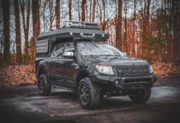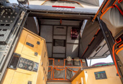 - Canopy Zusatz Features außen: Sandblechhalterung und “Sandledders” Custom Paint an rechter Canopyklappe (härtere Gasdruckdämpfer für das Mehrgewicht), 3 Airlineschienen an der Heckklappe, Dachträgersystem für Befestigung von Material oder Kisten, 180 WP Solarpanel von Tigerexped, Lazer Lamps Utility 25 Rückfahrscheinwerfer mit Rückfahrlicht gekoppelt und auch einzeln schaltbar (Campsitebeleuchtung), 2 Fahrradhalterungen an Molleplatten, High Lift Halterung.