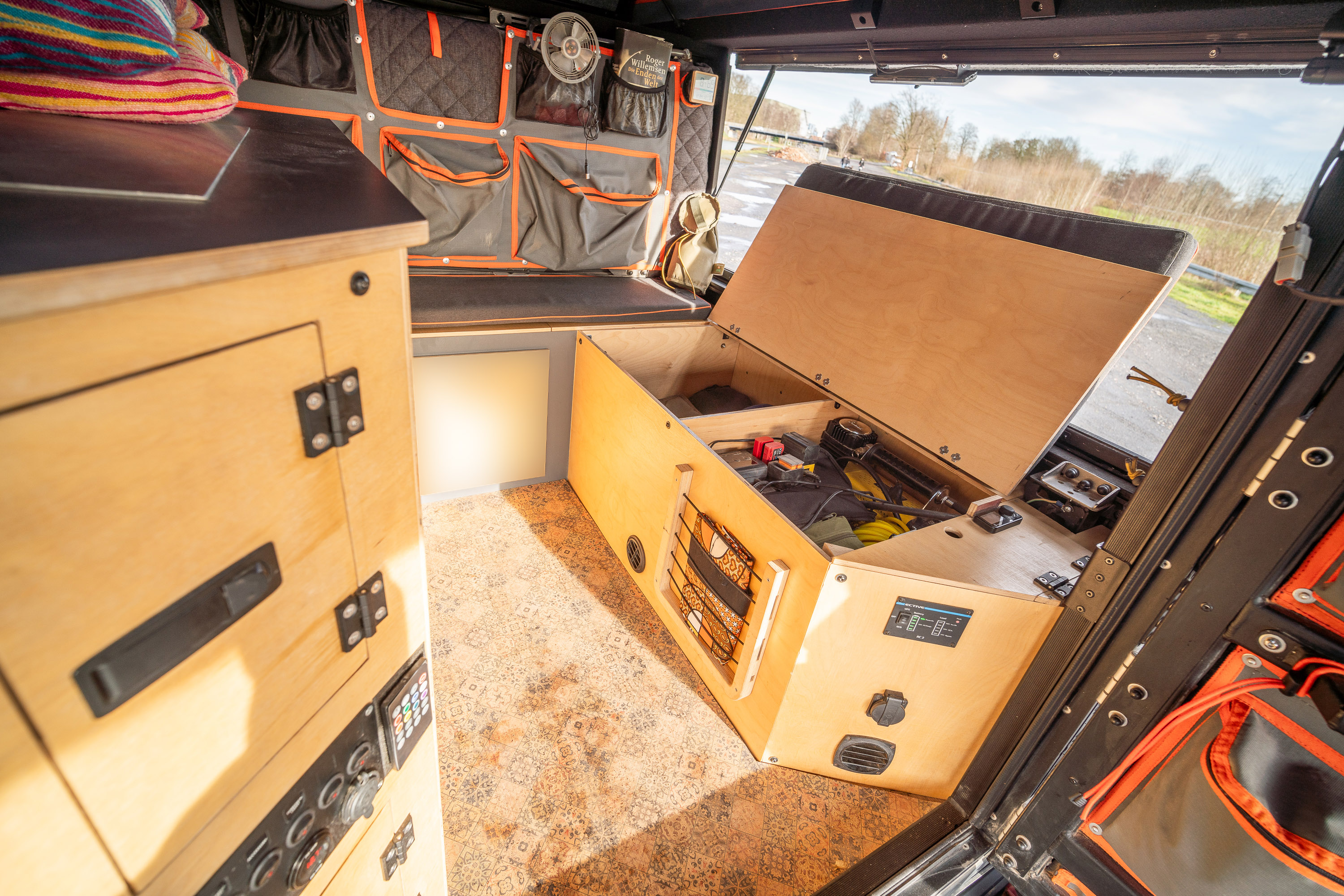 - Canopy Ausbau Features: Autotherm 2D Dieselstandheizung mit Comfort Control, Landstromeingang Victron Energy aus dem Yachtbau, 110 Ah LiFePo Liontron Verbraucherbatterie mit Bluetooth Überwachung, Victron DC-DC Ladebooster mit Bluetooth Überwachung, Victron Solar MPPT Laderegler 100/20 Smart mit Bluetooth Überwachung, Victron Solar MPPT Laderegler 75/16 Smart mit Bluetooth Überwachung, ECTIVE 1000 W Inverter/Ladegerät 10S mit Fernbedienung an der Eingangsklappe, Sicherungskasten, Schaltpanel mit Ladeports USB und USB-C und 12V Anschluss im Eingangsbereich.