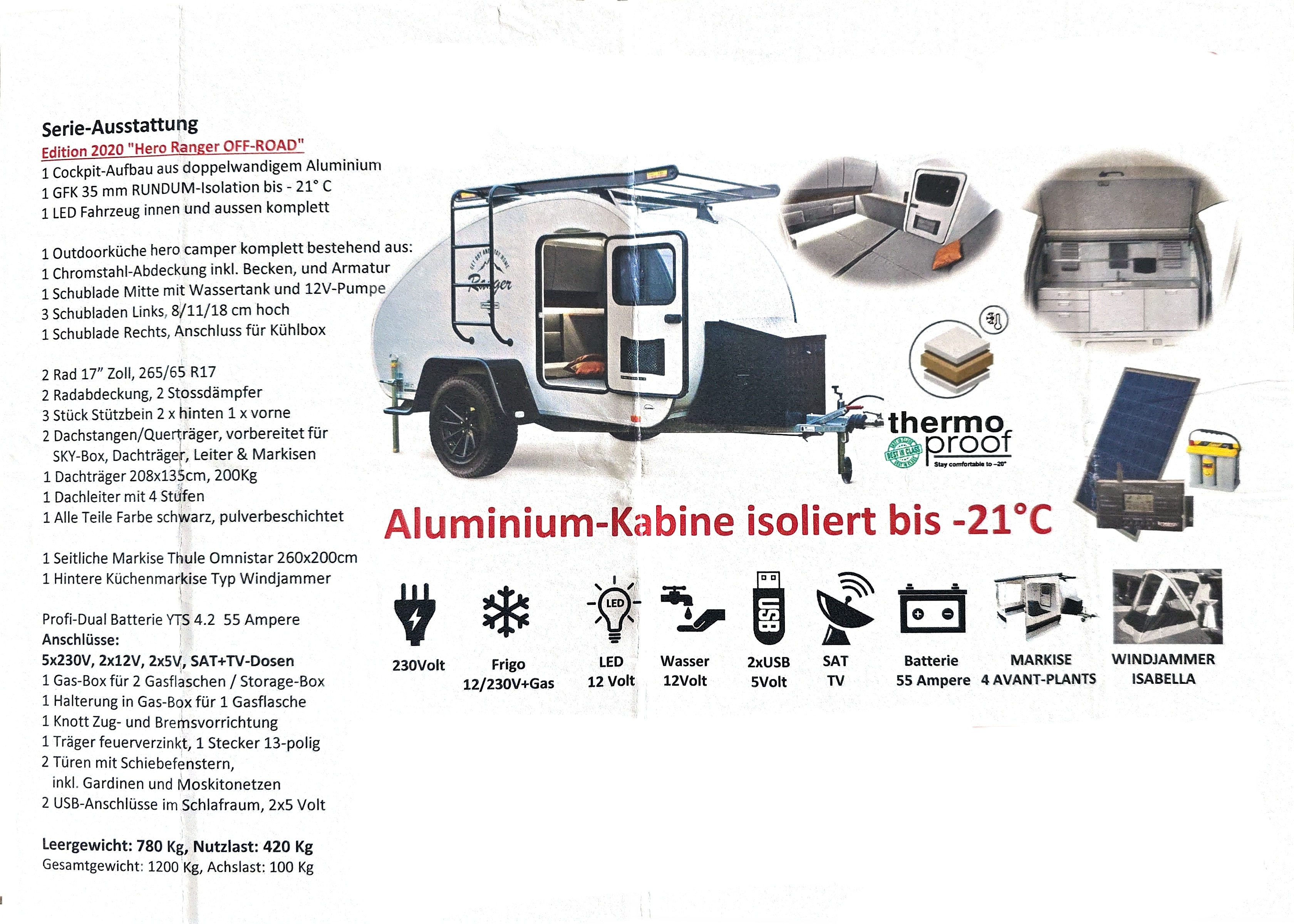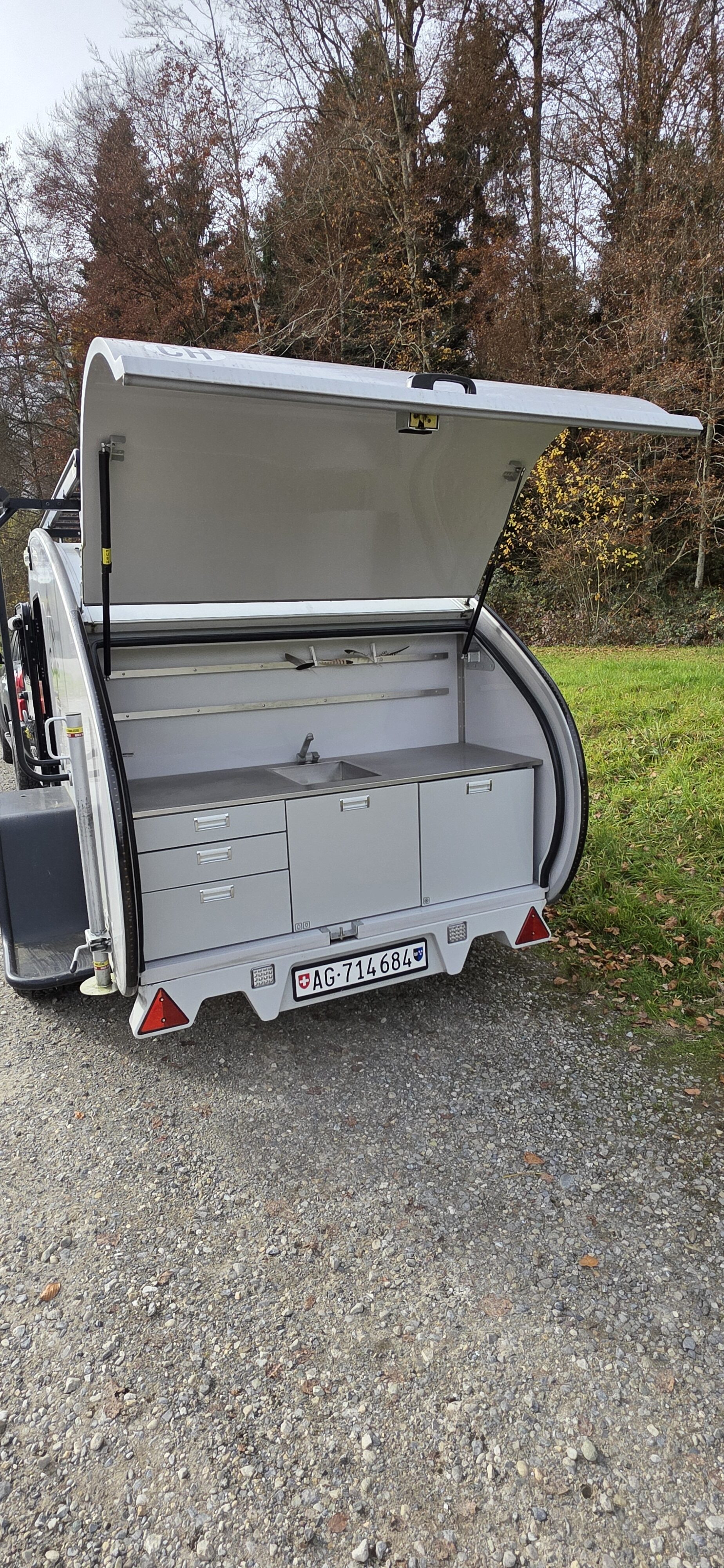 Verkaufe meinen gebrauchten, aber gut erhaltenen, Offroad Caravan, wegen Neuanschaffung. Ideal für spontane Ausflüge in die Natur! Der Wagen ist leicht zu ziehen und bietet ausreichend Platz für zwei Personen und ein Kind oder Hund. Sein Highlight ist unter anderem eine Chromstal Küchenabdeckung. Er ist perfekt für alle, die das Abenteuer suchen, aber nicht auf Komfort verzichten moechten. Zustand: Gebraucht, aber gepflegt.