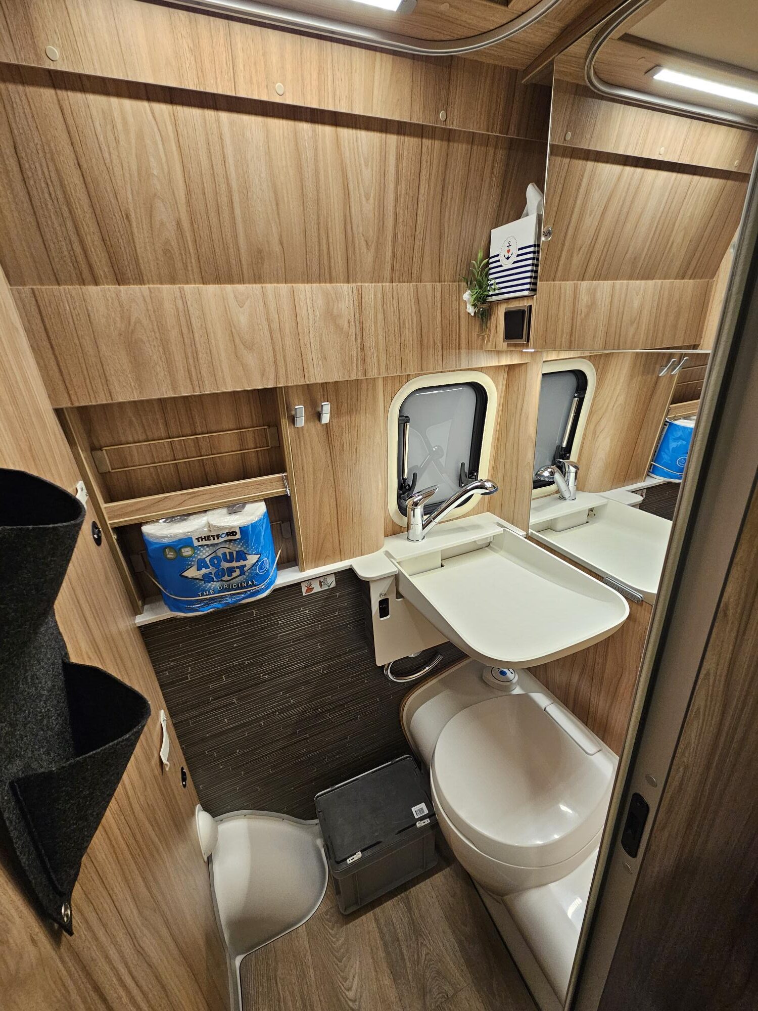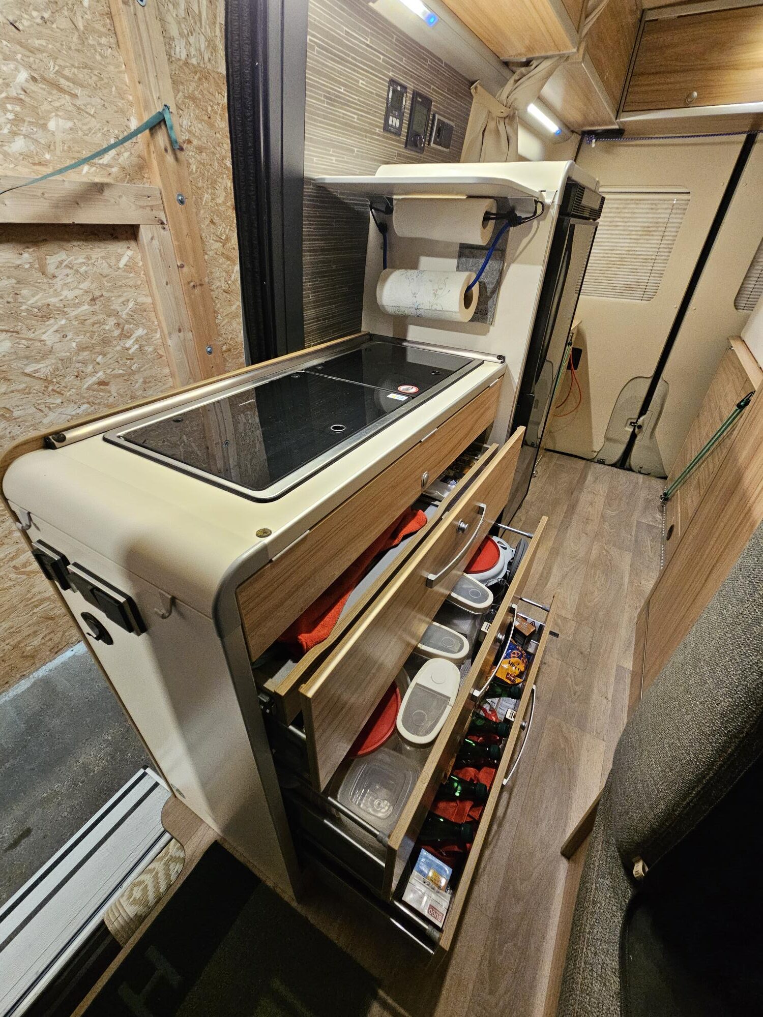 Warmwasser (100l Frischwasser), Nachtlicht, 2x Aufbaubatterie, Kühlschrank inkl. Gefrierfach. usw.