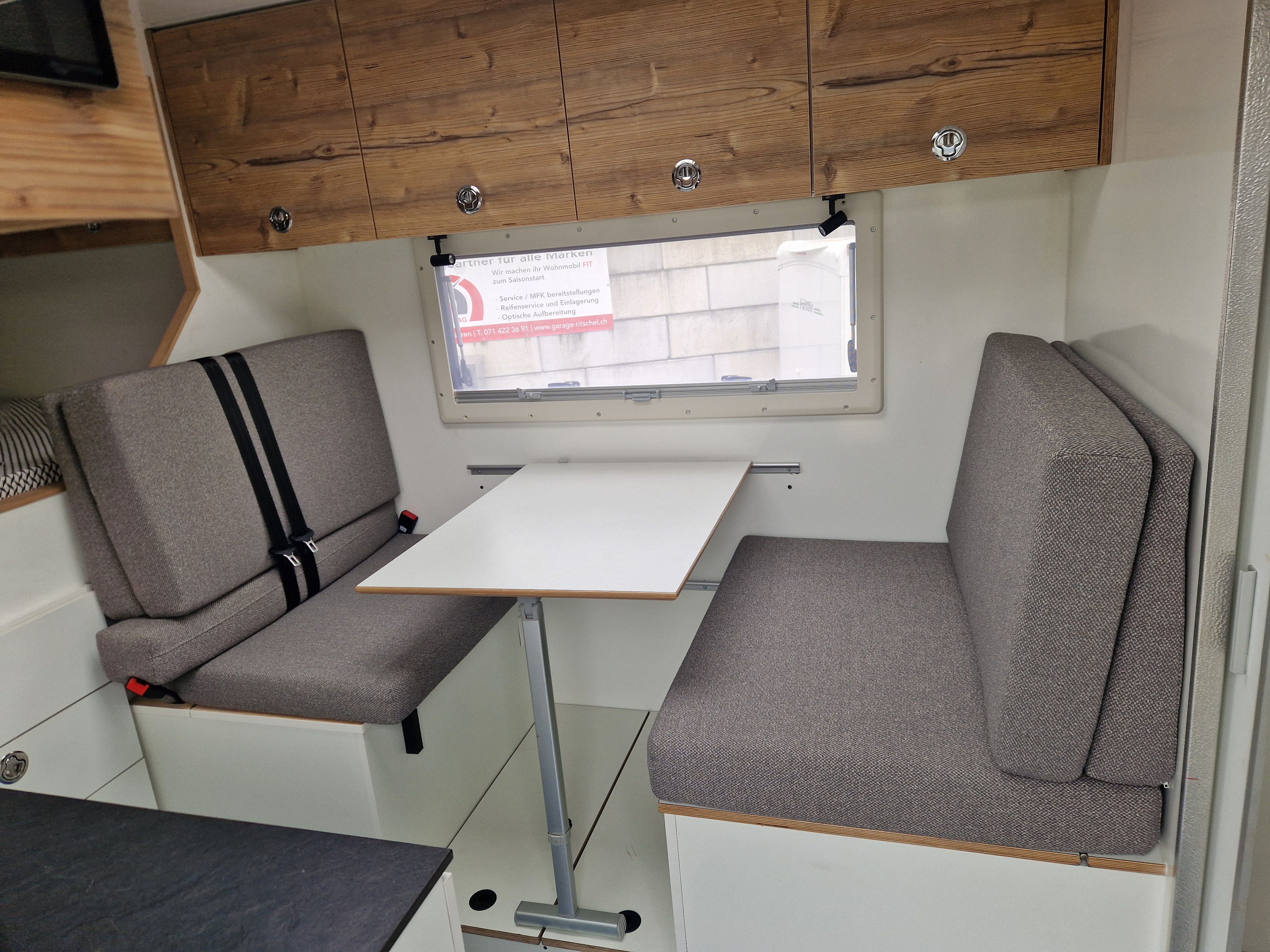 Eingetragen 5 Sitzplätze inkl. Sicherheitsguten / 3 stk. vorne 2 stk. Hinten in Wohnkabine