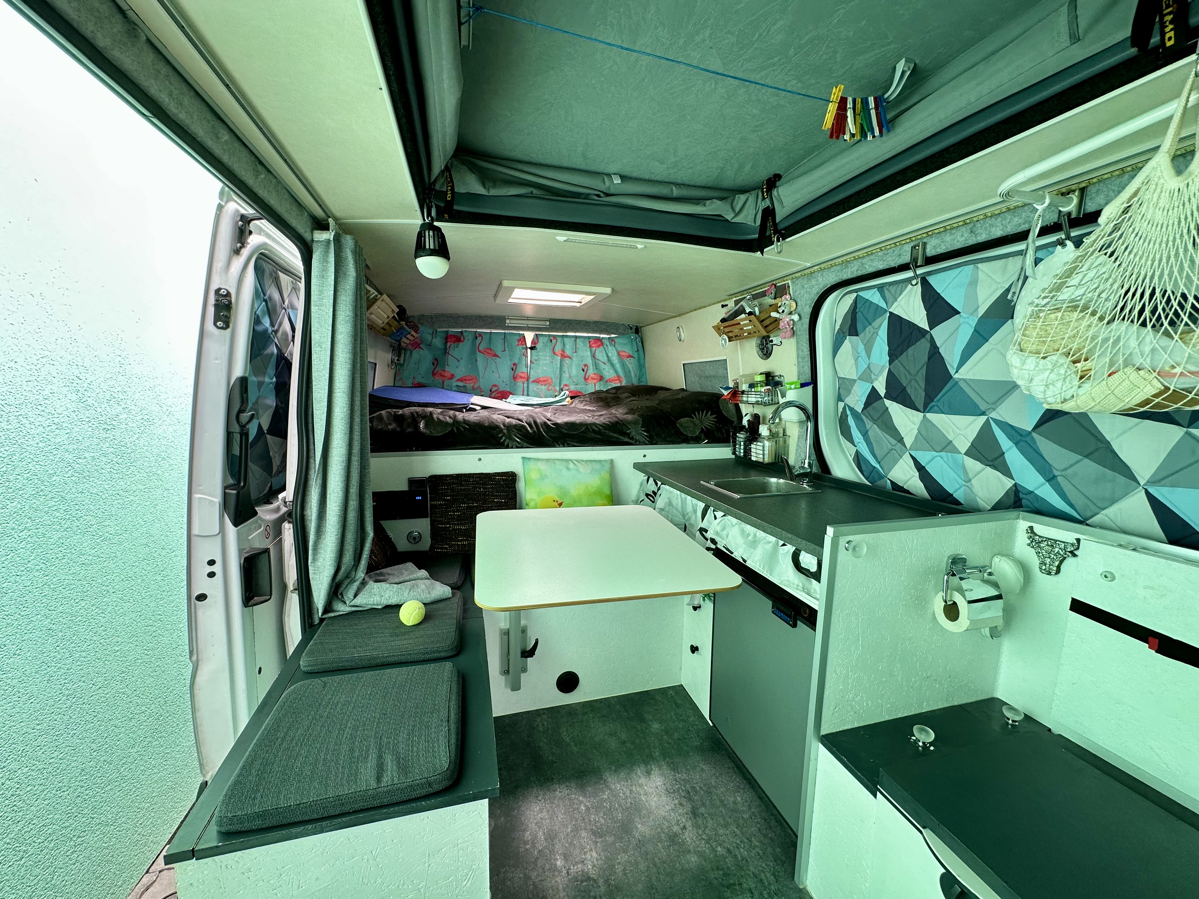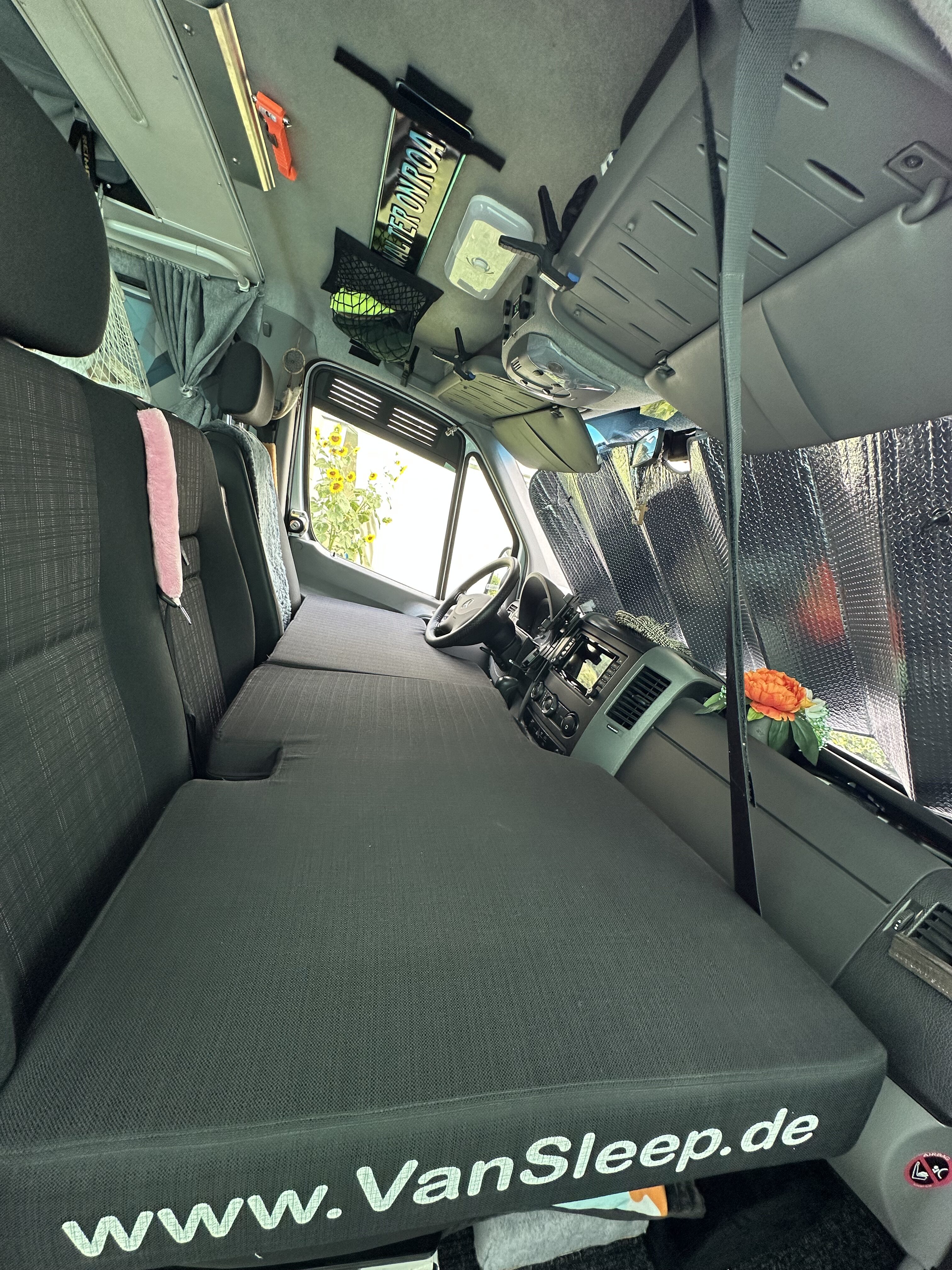 * Drehkonsole für die Doppelbank (R&J Camper Solutions, homologiert) – mehr Raum beim Parken