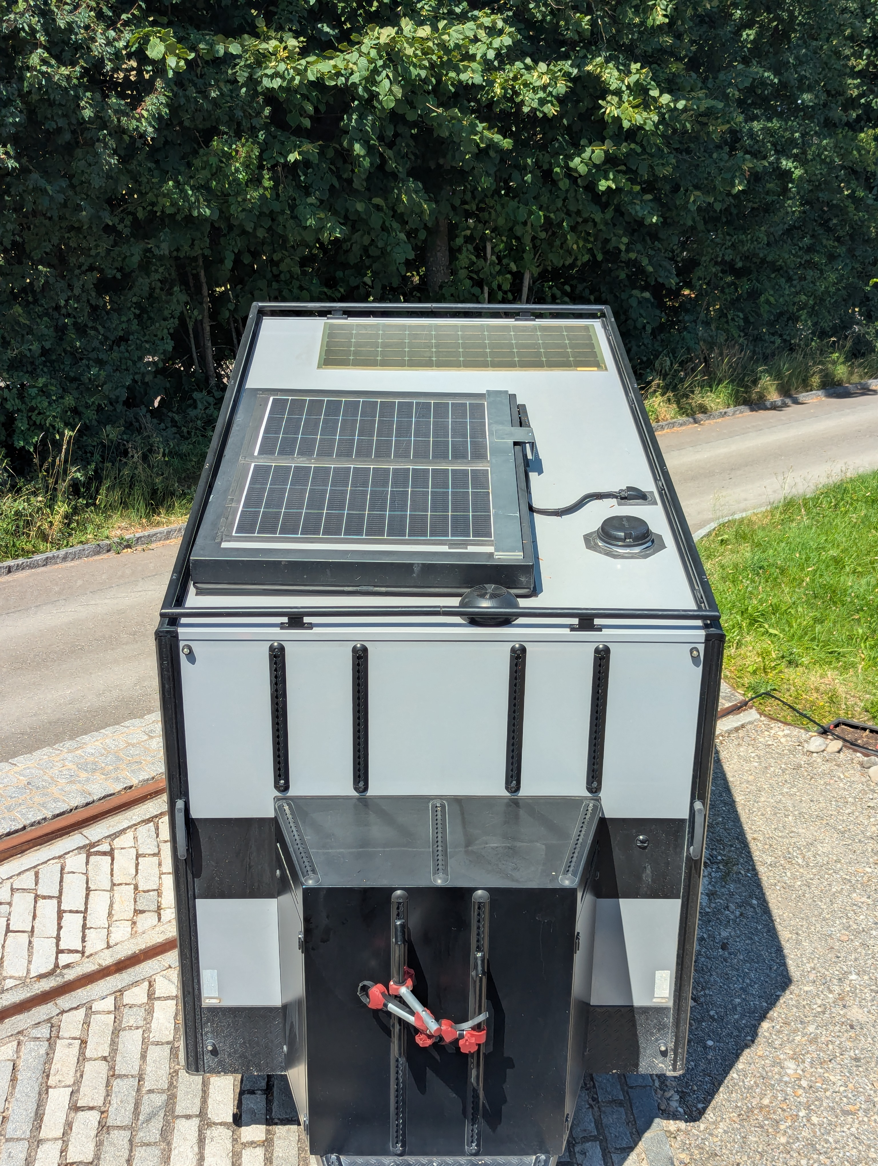 Der Trailer wurde 6 Monate intensiv genutzt (20000 km auf Asphalt und Schotterpisten), davor jedoch kaum (max. 5000km). Verschiffen in einem Container ist problemlos möglich.