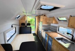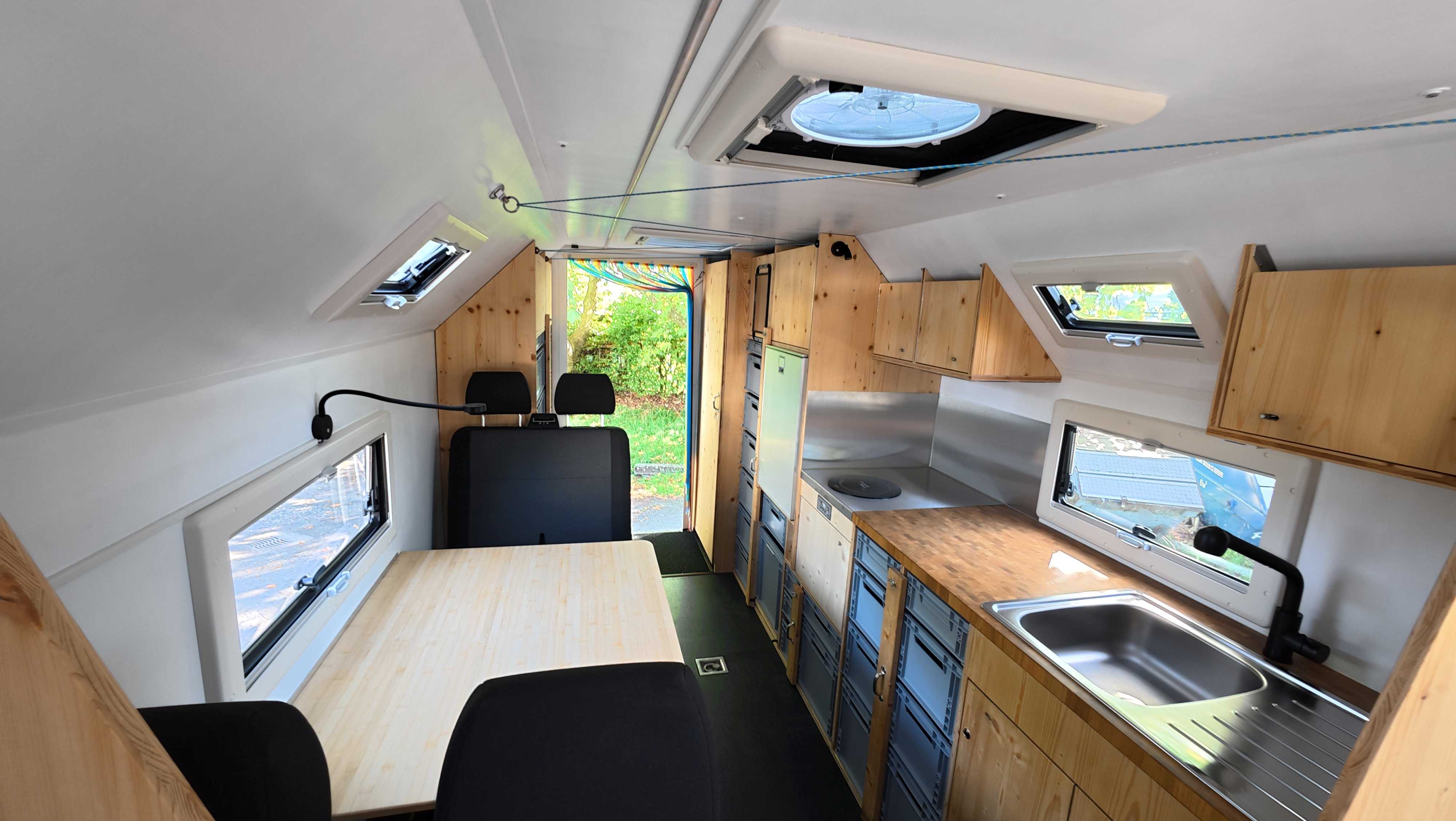 Der robuste Container mit einer grosszügigen Wohnfläche von gut 10m2, ist aus GFK-Sandwich und sehr gut gegen Hitze und Kälte isoliert. Der Innenraum ist mit Fenstern und Dachluken schön lichtdurchflutet und strahlt mit seiner offenen Gestaltung ein sehr angenehmes Wohnklima aus.