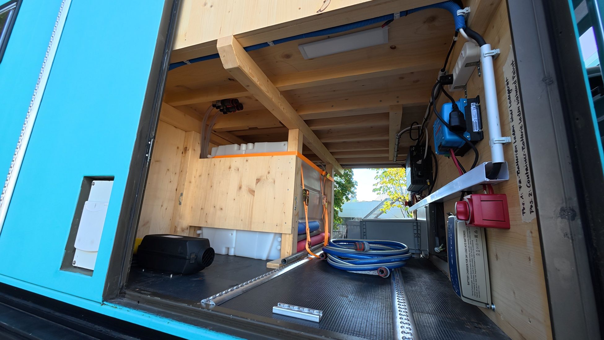 - Grosser Stauraum im Technikraum unter dem Bett, zugänglich von innen und aussen.