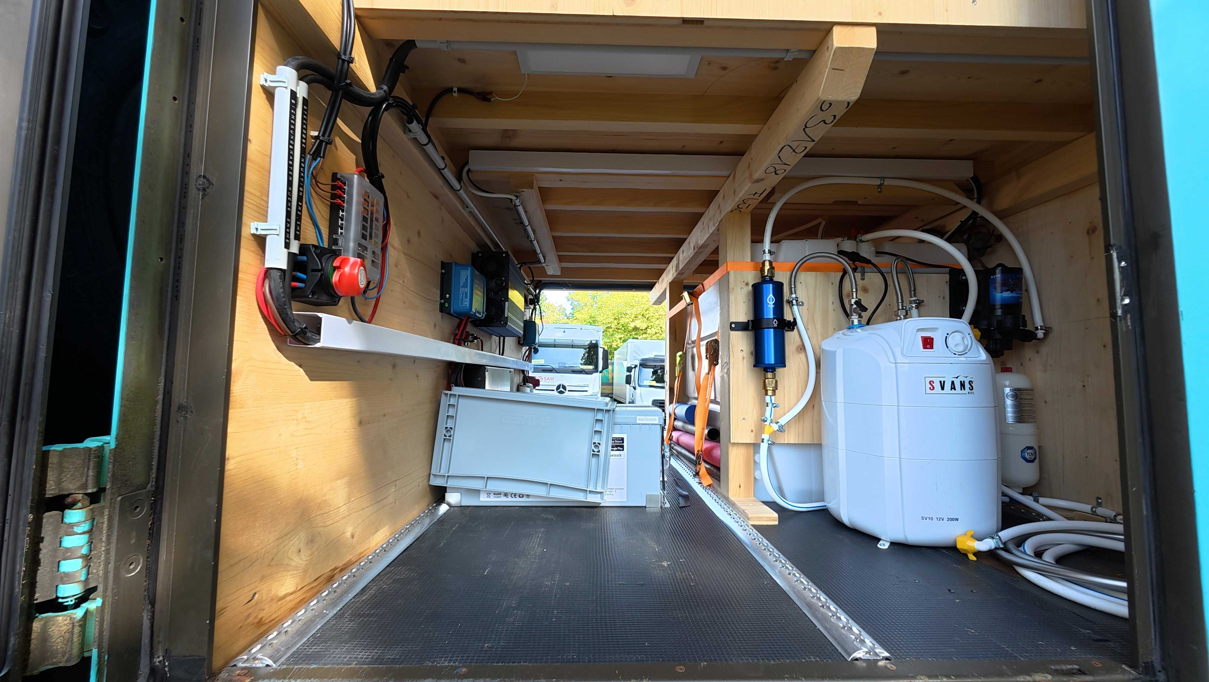 - Montage des Containers durch spezialisierten LKW-Fahrzeugbauer. Alles von der MFK geprüft und eingetragen, mit allen notwendigen Prüfpapieren.