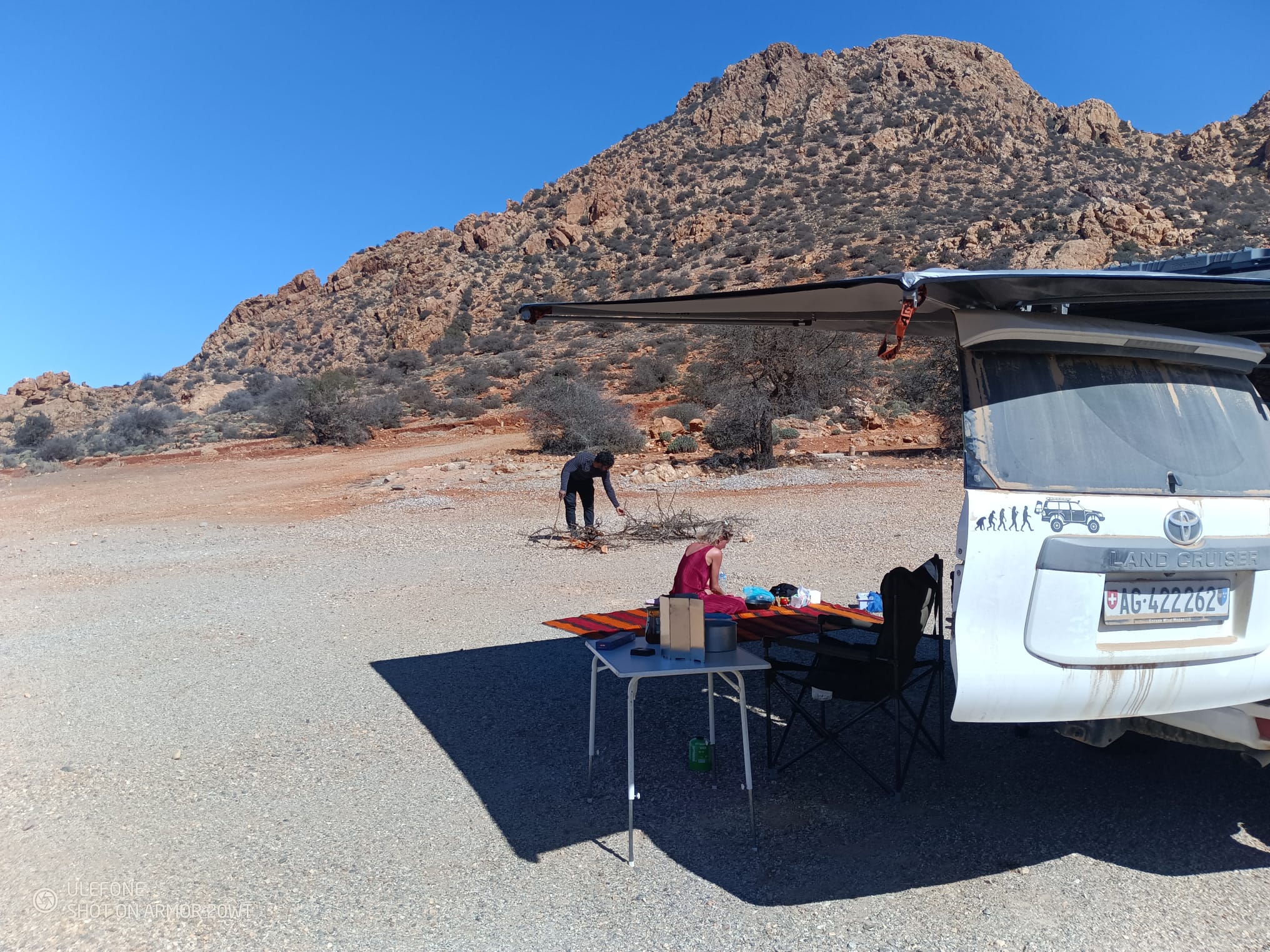 Leider hat die Dachzelthalterung von Rhino-Rack versagt und ist in der Wüste von Mauretanien gebrochen. Sie konnten mir da das Ganze provisorisch reparieren, und mit Hilfe von Spanngurten ging es dann einigermassen gut weiter.