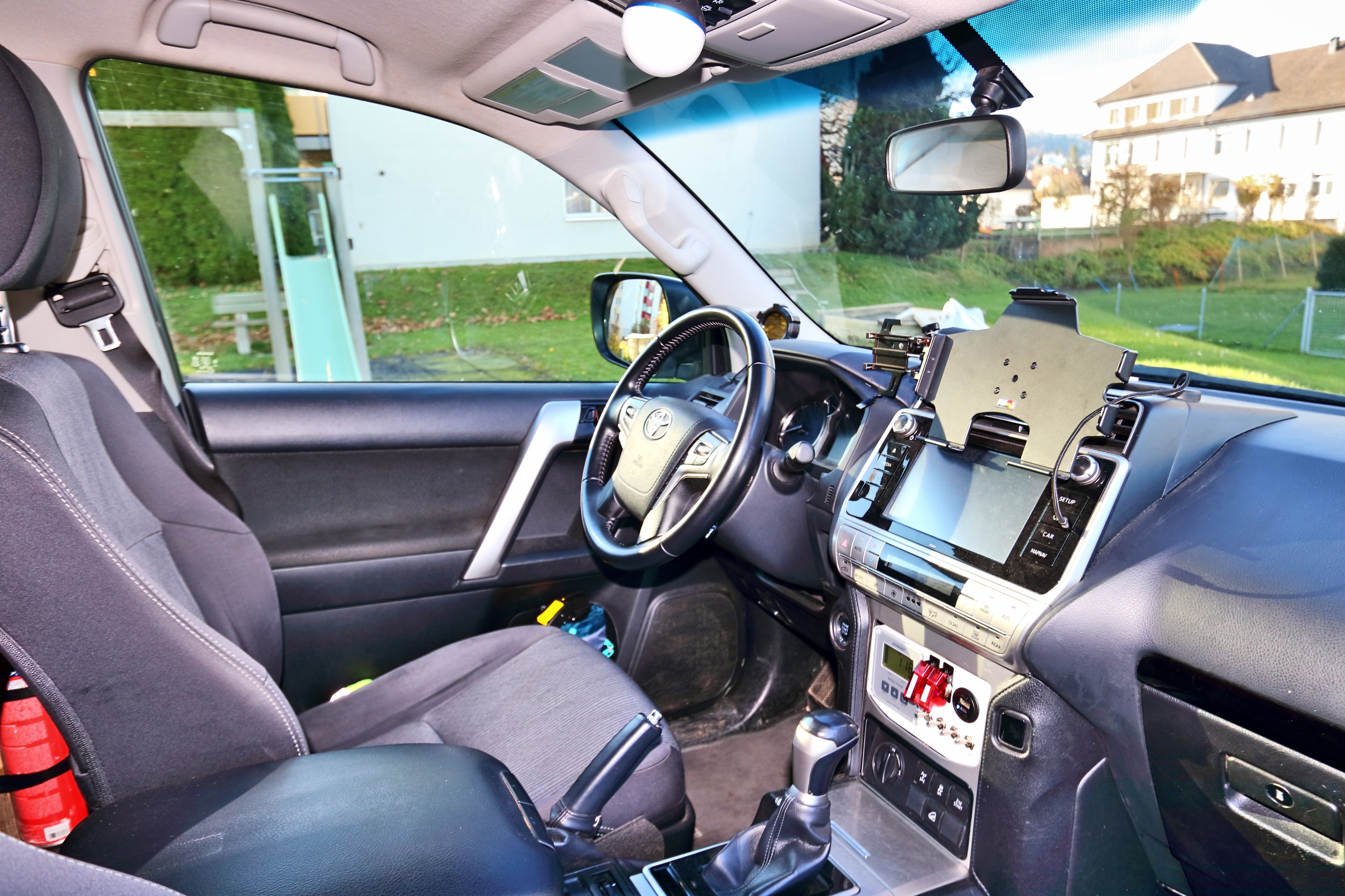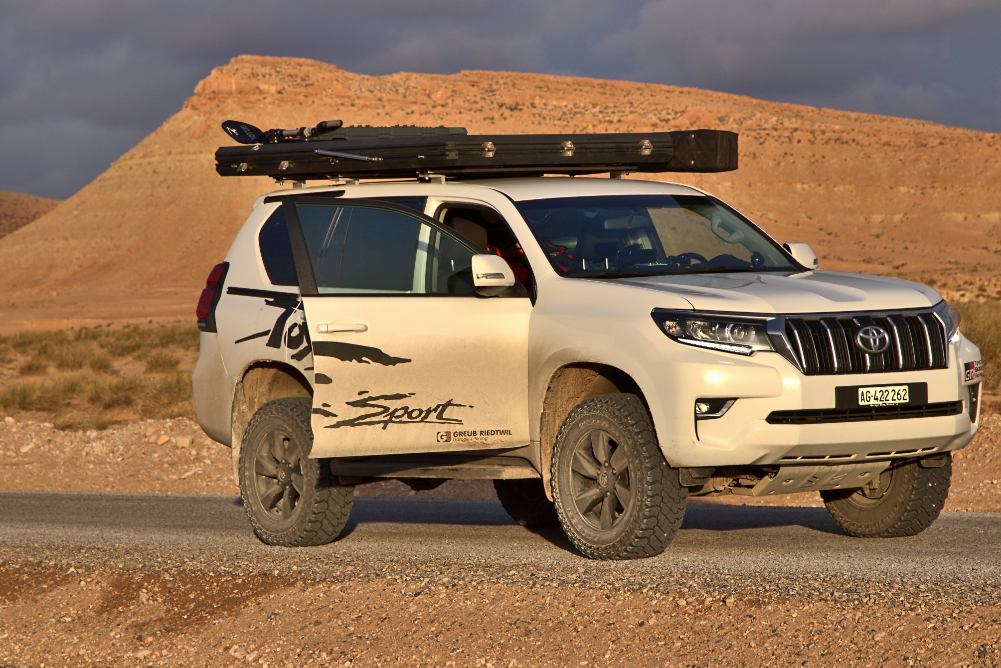 Der Toyota hat mit dem Dachzelt eine Höhe von 2.13m und ich kann damit in unserer Einstellhalle parkiere, wo er auch immer steht, wenn er nicht gebraucht wird!