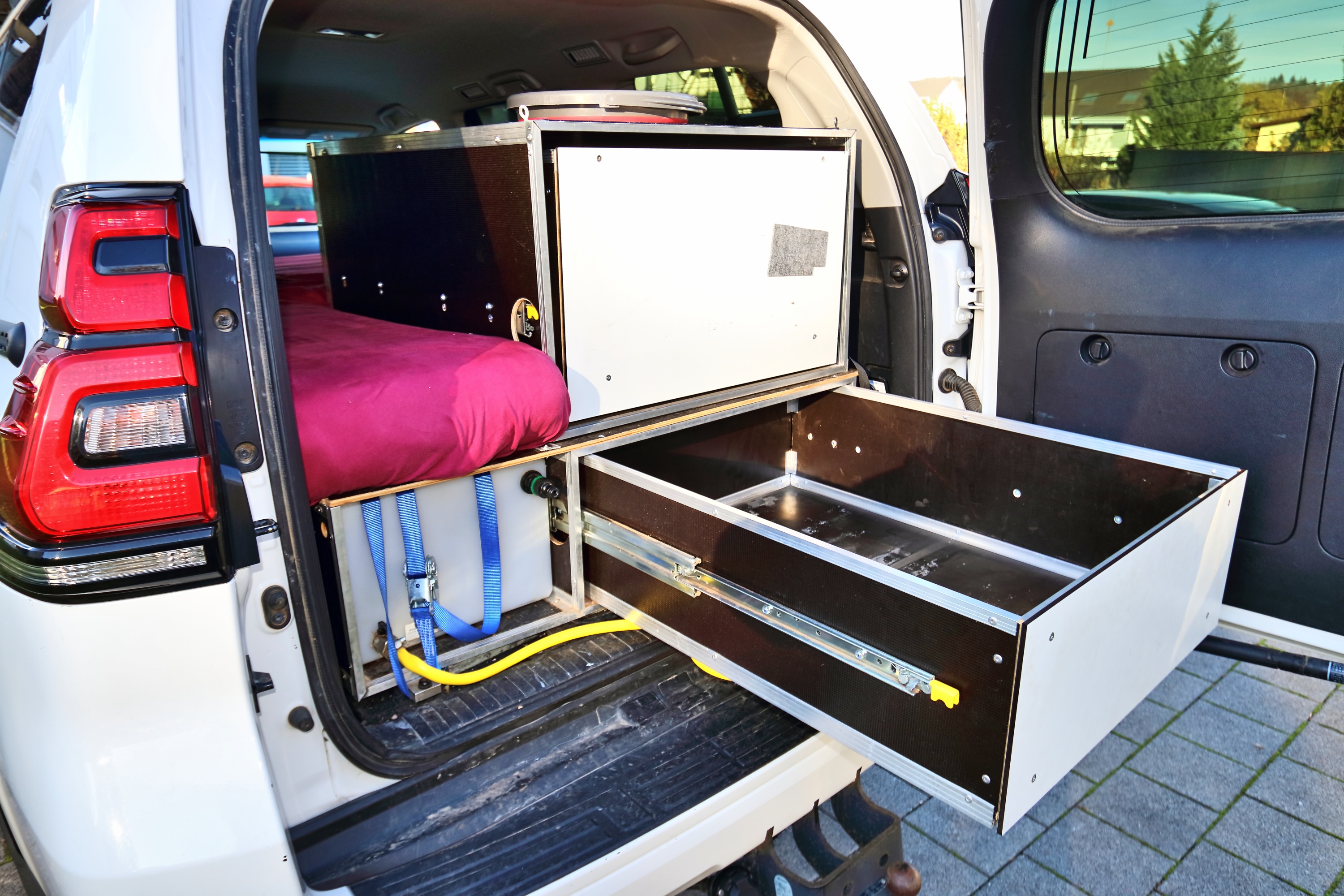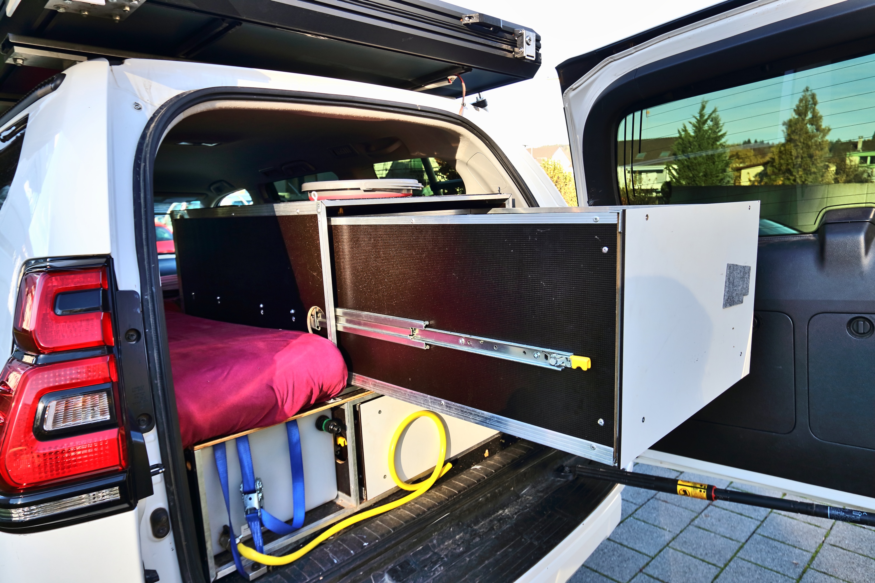 Ich habe ihn 2022 gekauft und bin damit ca. 55000 km gefahren. Ich habe ihn fast nur für meine Reisen bewegt. Bis jetzt war ich vorwiegend in wärmeren Destinationen, möchte nun aber auch Gegenden in kalten Zonen bereisen. Dies ist der Grund, warum ich ihn verkaufen will. Der Toyota ist als 5 Plätzer vorgeführt. Der Umbau vom grosszügigen SUV zum Reisemobil dauert ca. 2h.